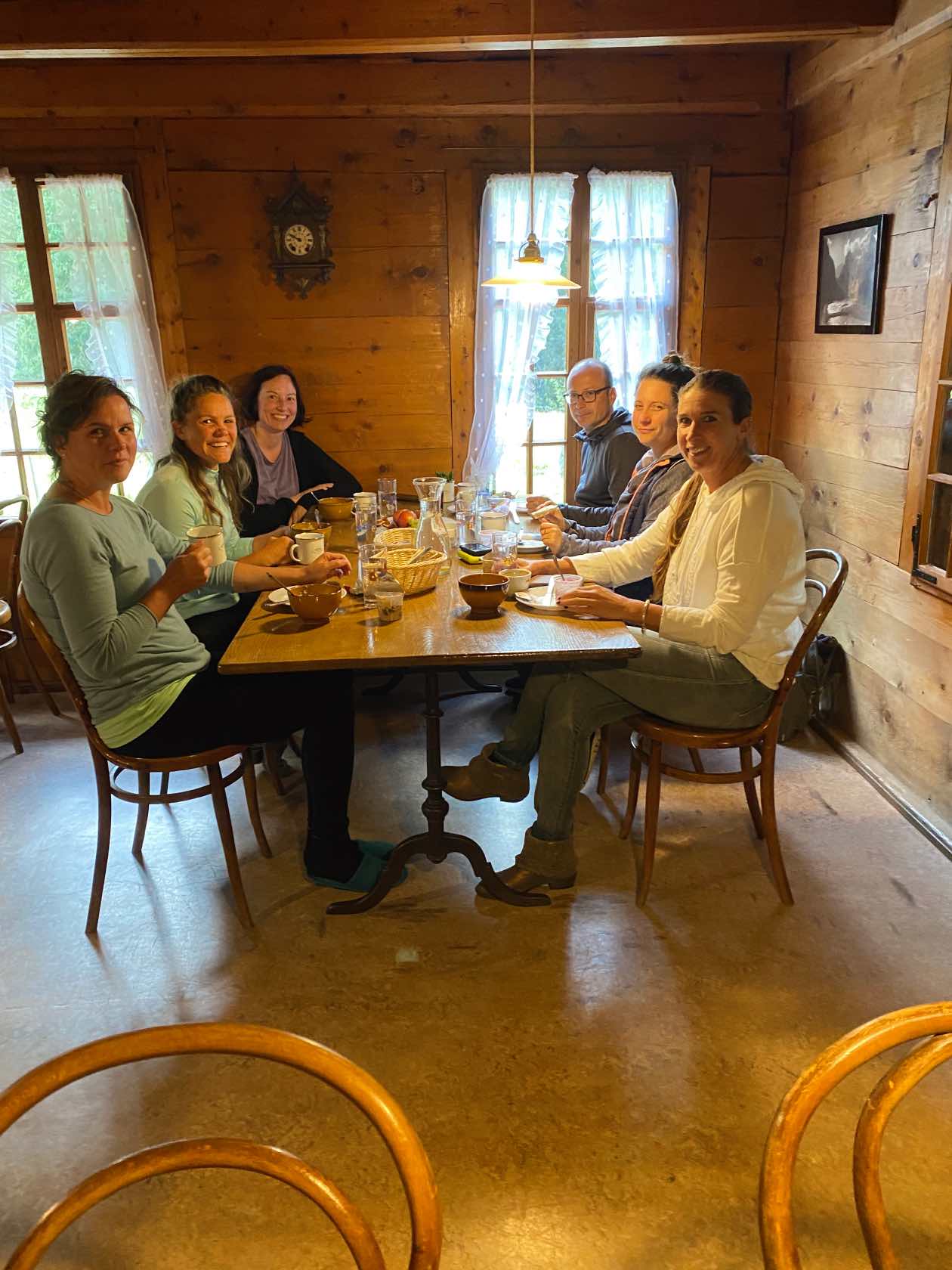 Wir logieren in einer renovierten Pension mit viel Charme, die urchige Gerborgenheit und Platz für wertschätzende Gemeinschaft bietet. Diese liebevoll geführte Pension befindet sich an einem Kraftort in Leissigen im Berner Oberland und geniesst weiten Blick über den Thunersee. Eine einzigartige Lage, die die gesamte Auszeit magisch macht.